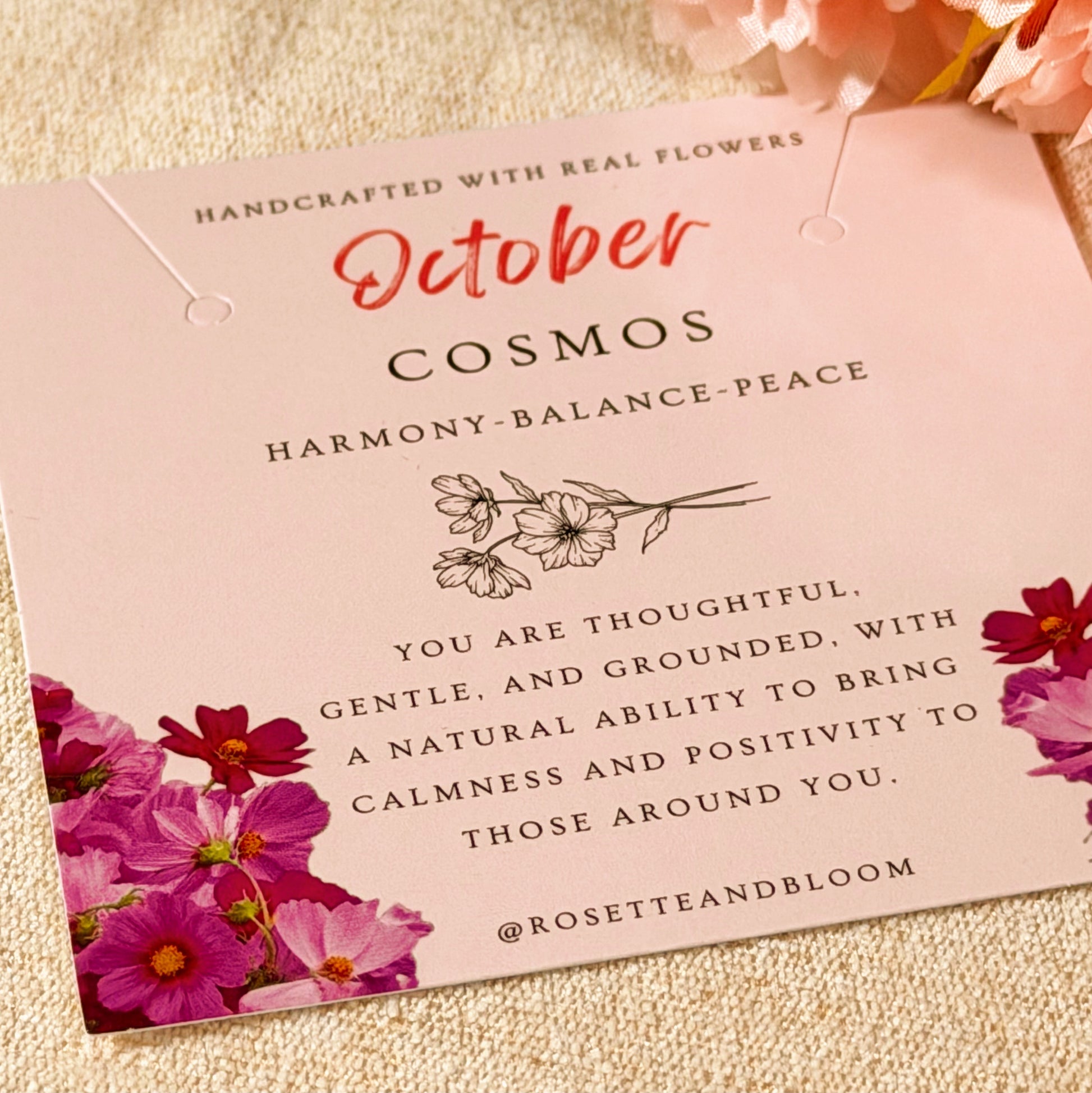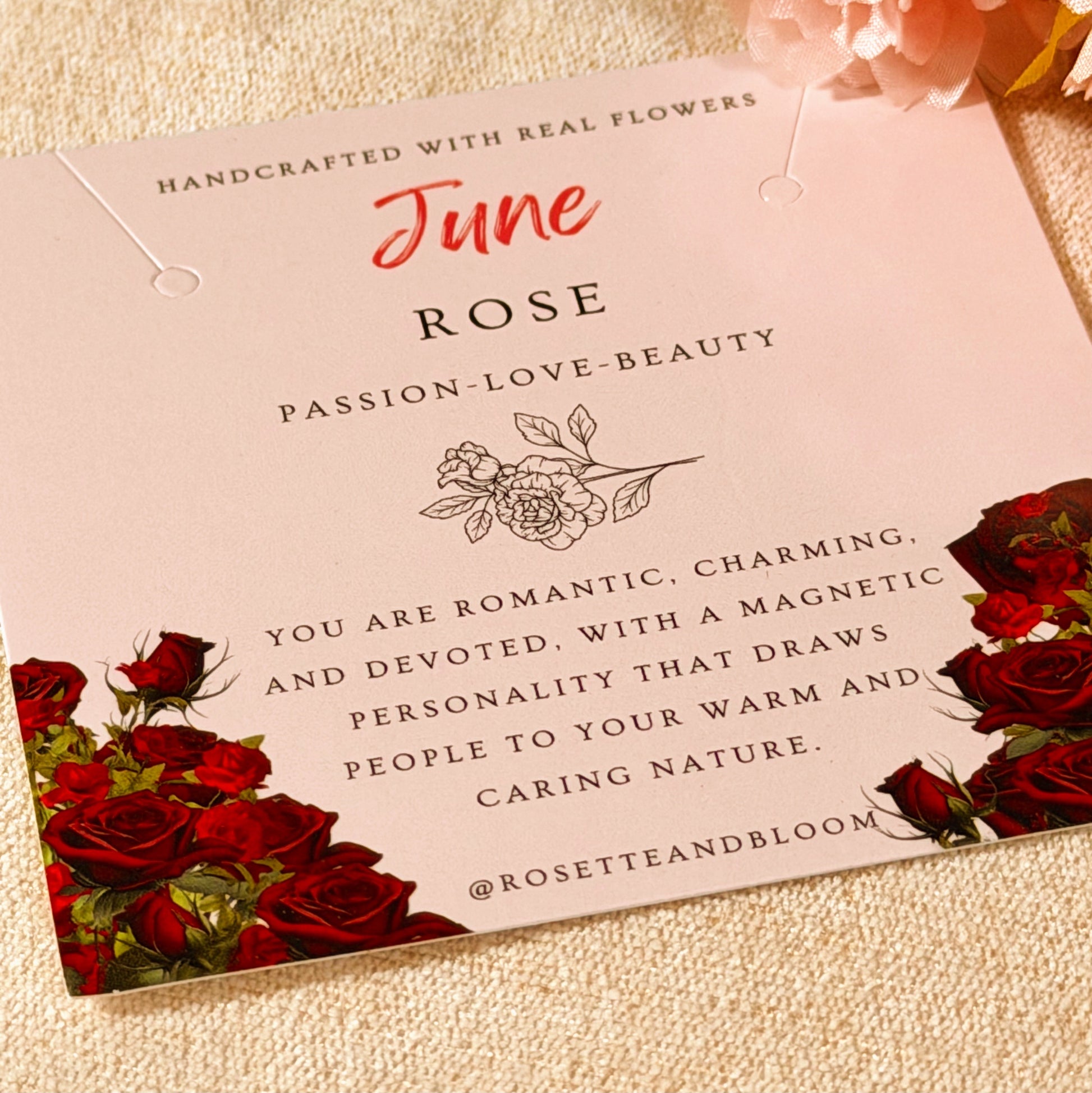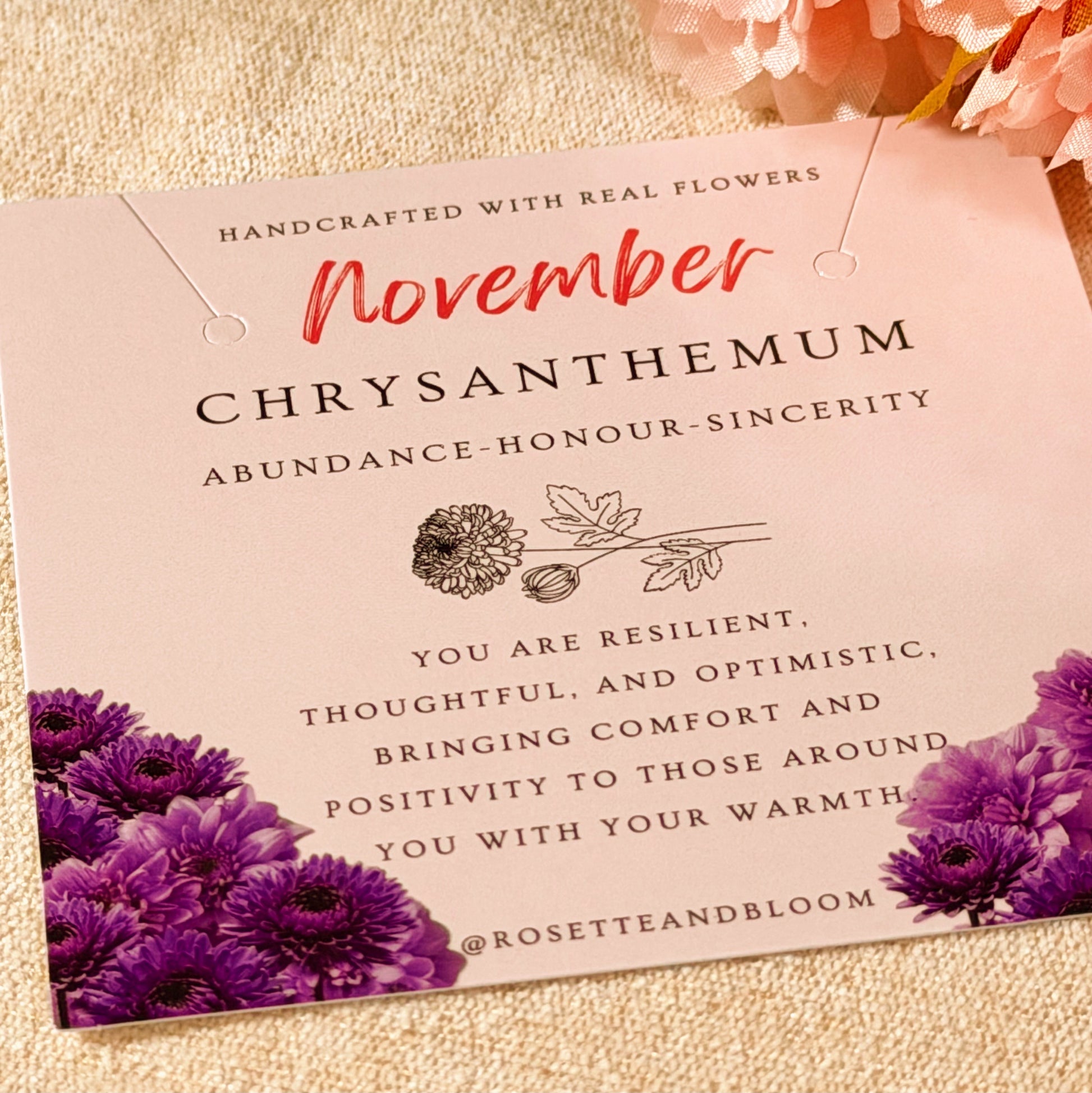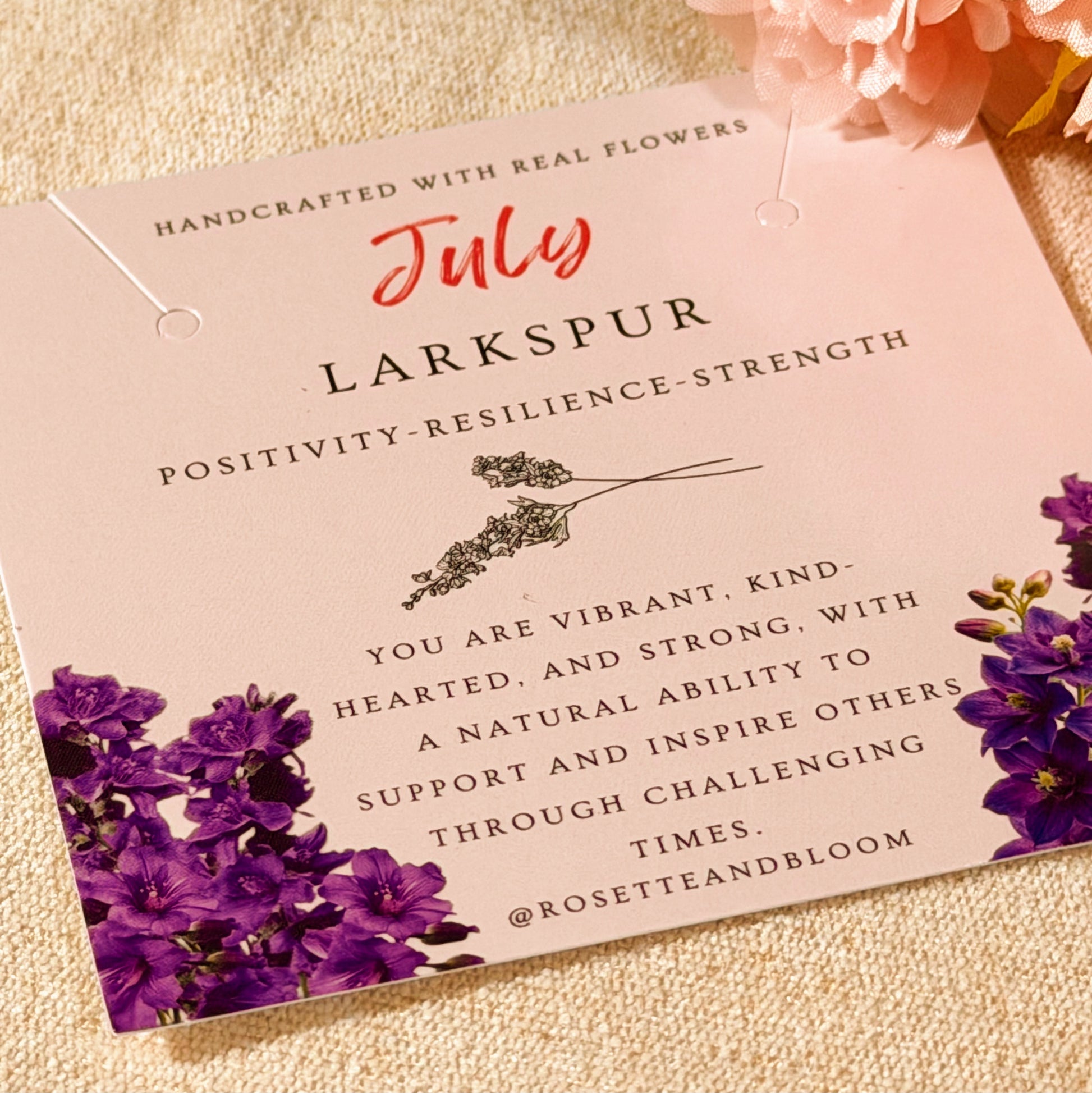 Real flowers preserved in resin and set in 18k gold plated stainless steel. Each necklace represents a birth month flower, making it a personal and meaningful piece to wear close to your heart. Elegant and timeless, it is perfect as a keepsake for yourself or a thoughtful gift for someone special.