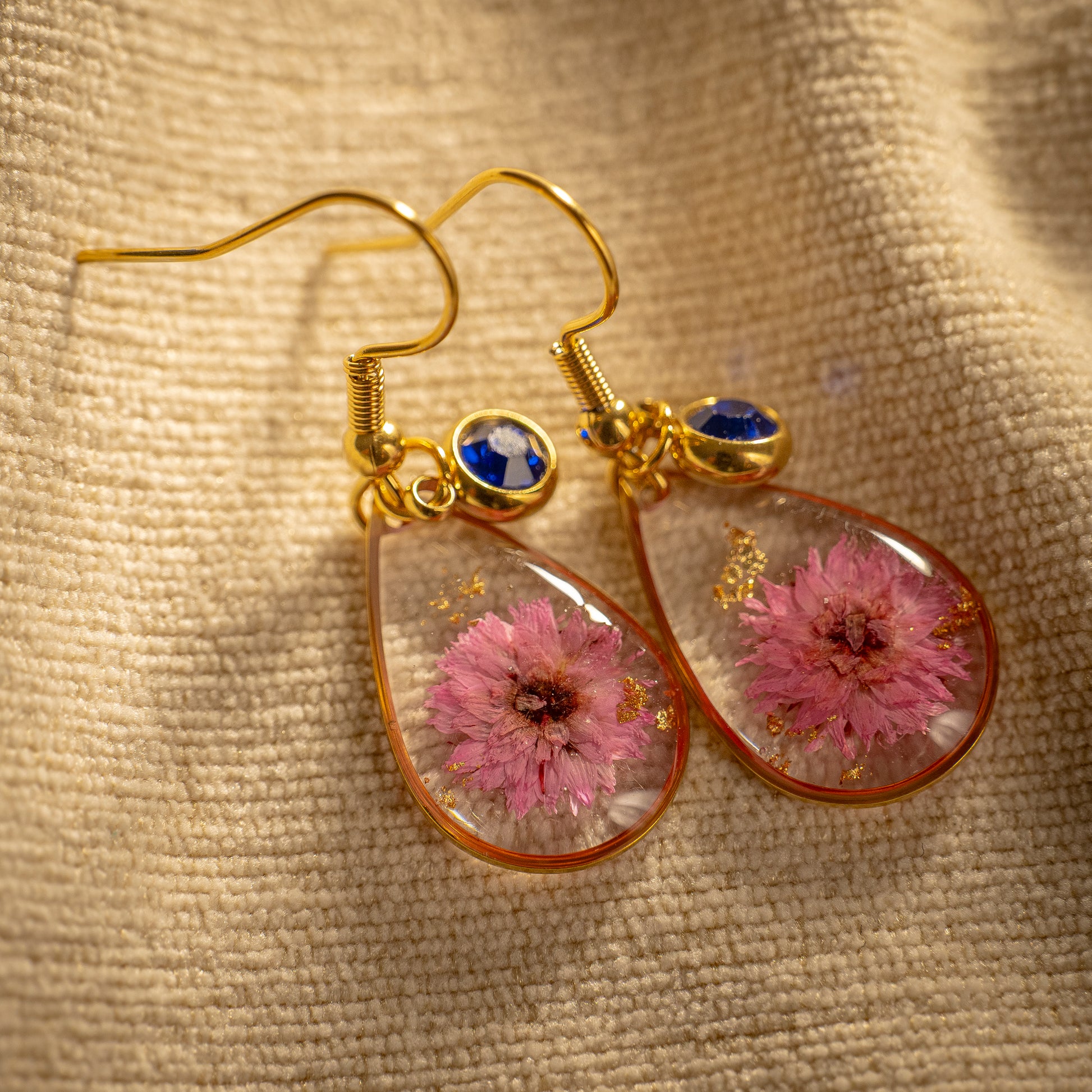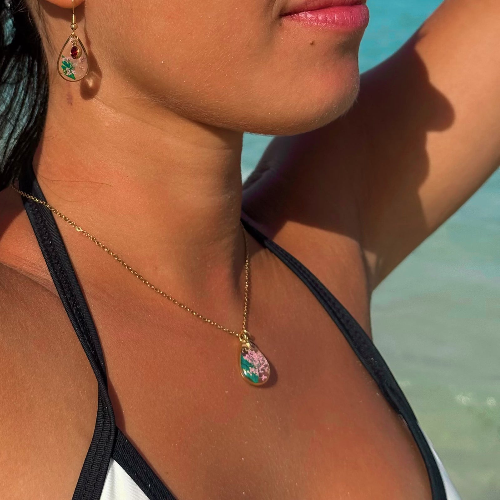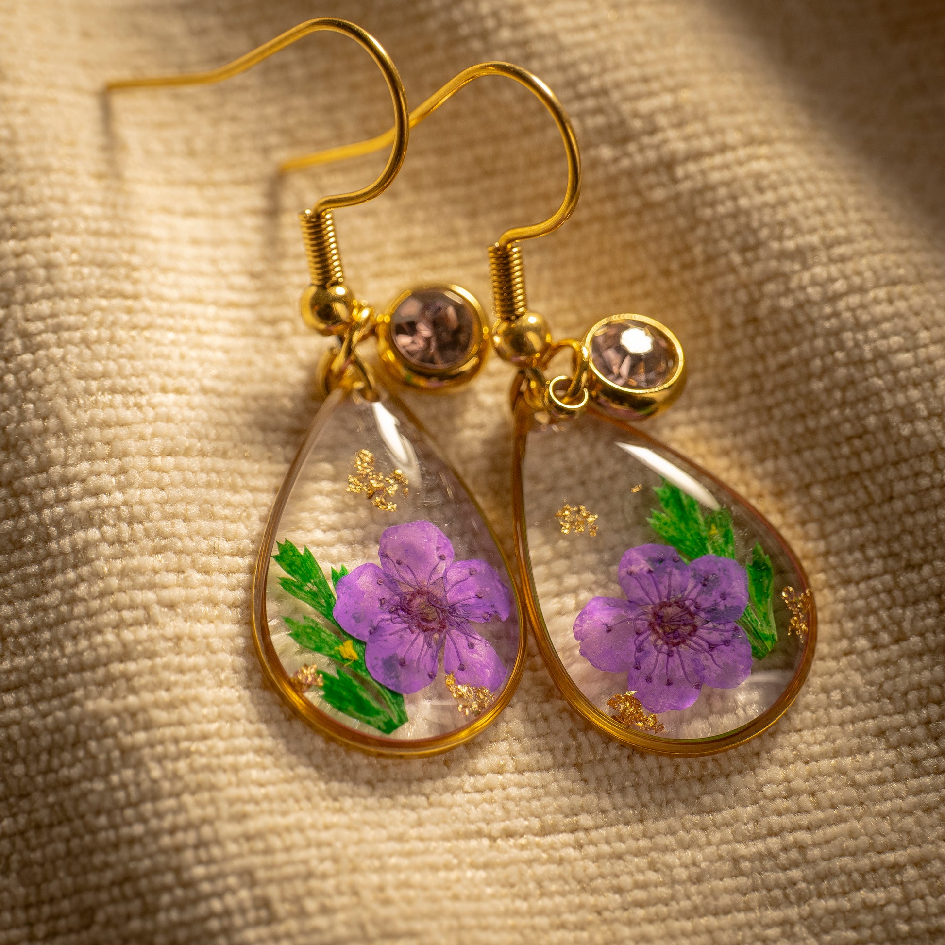 Each piece features a genuine flower grown from the earth, handpicked at full bloom, and preserved forever in resin.