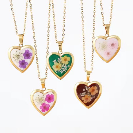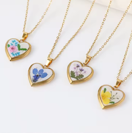 Each piece features a genuine flower grown from the earth, handpicked at full bloom, and preserved forever in resin.